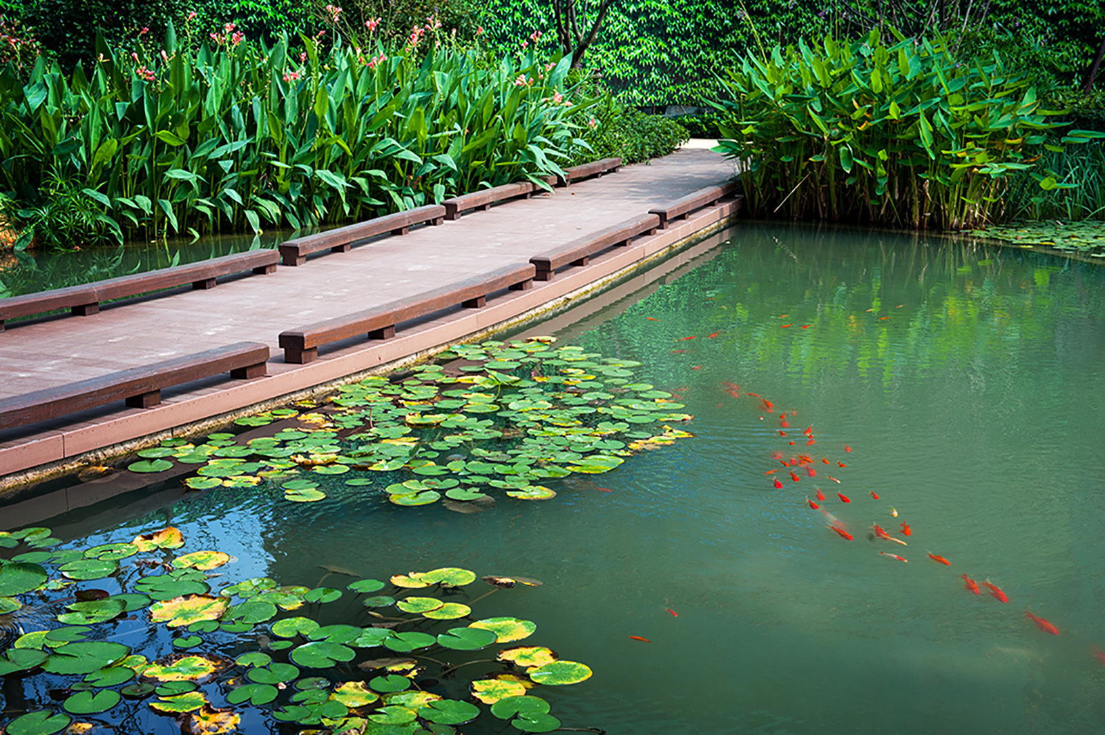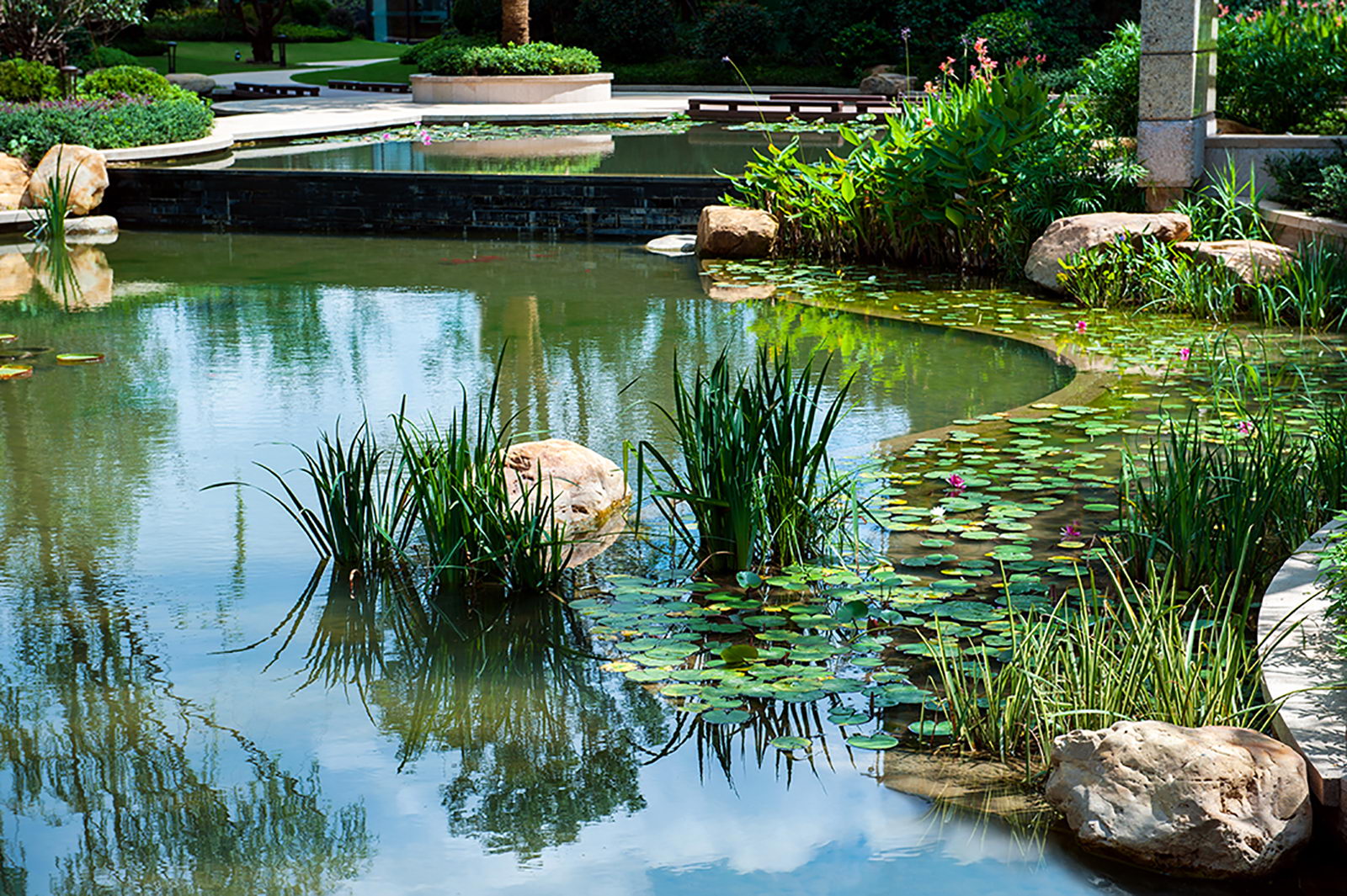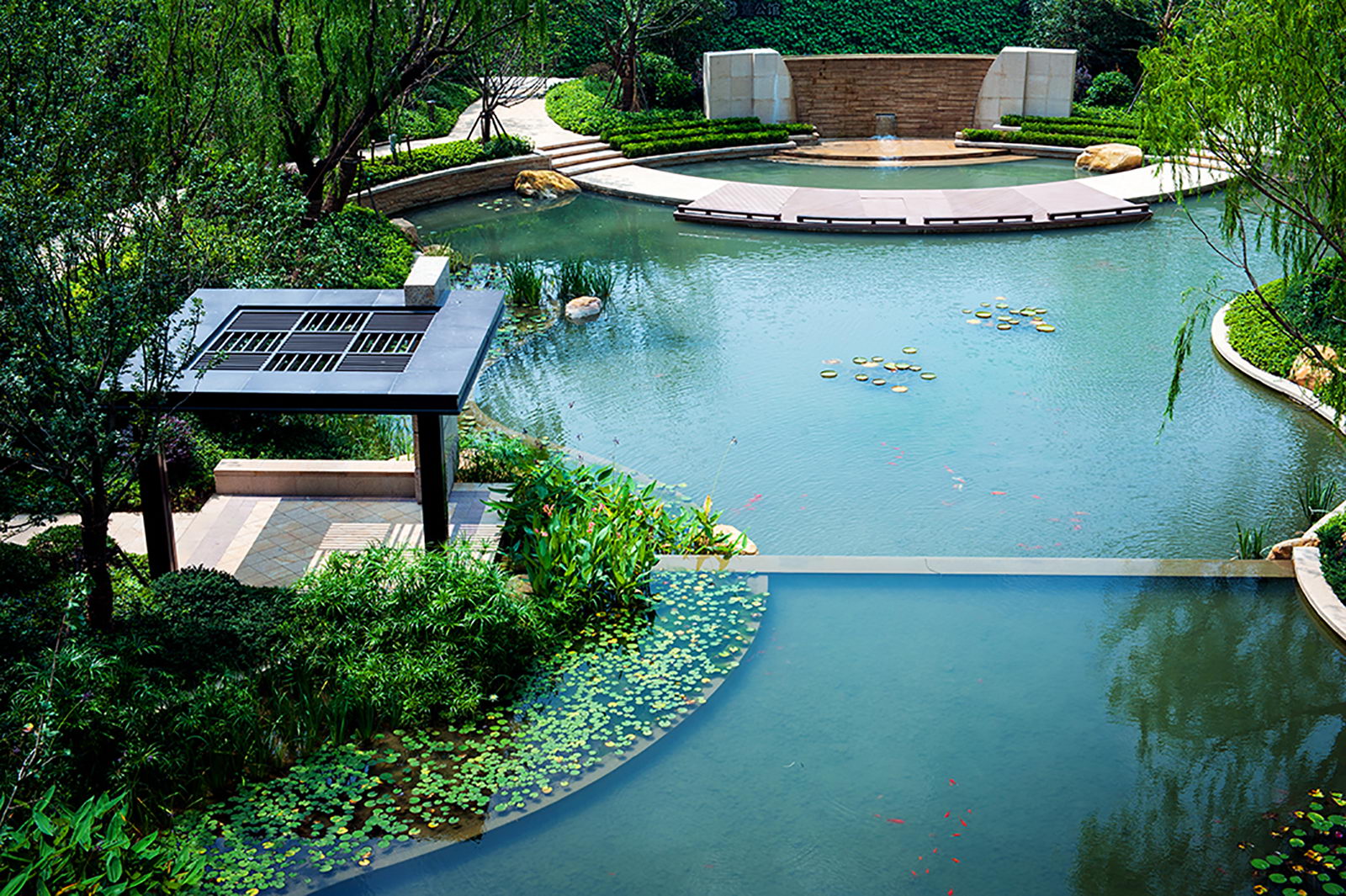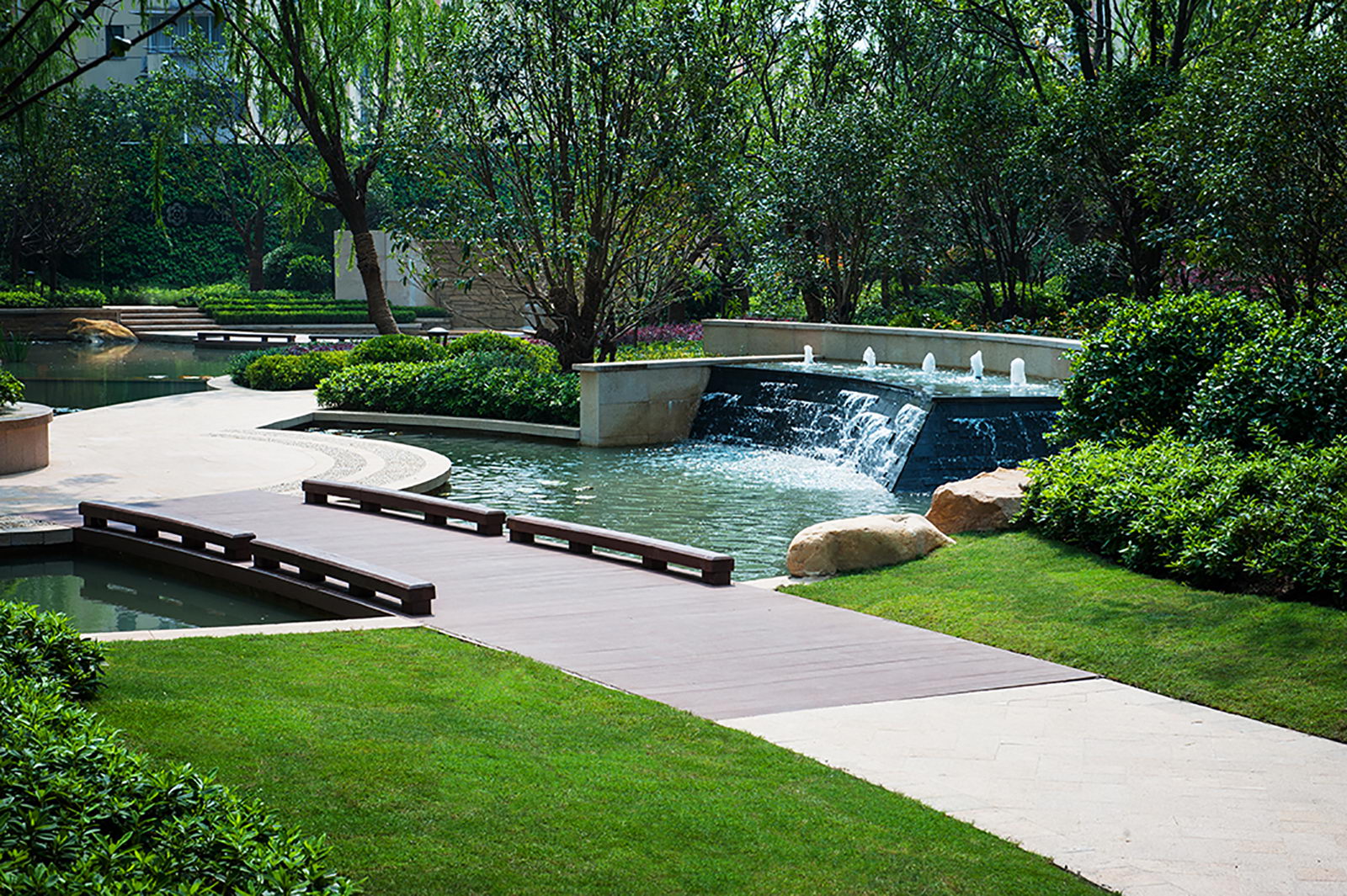 整個小區(qū)的景觀設計在當時借鑒日本人居設計思想,樓盤的總體定位即以高雅、藝術、自然共生為理念,融入精巧設計,對景觀細節(jié)進行了一一呈現(xiàn),疊石理水,以“水岸共生、居隱書香”為主題,構筑蘊涵傳統(tǒng)園林的空間布局和現(xiàn)代園林精華的景觀環(huán)境。