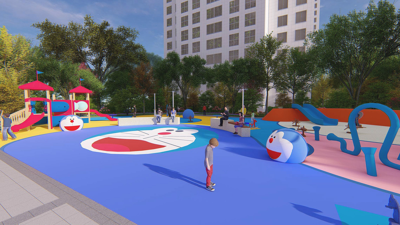 兒童活動區(qū)以五感體驗為設計理念,融入經典卡通形象“哆啦A夢” 為設計主題,通過新穎的互動性設計充分調動兒童的聽覺、視覺、味覺、嗅覺、觸覺體驗,使兒童獲得獨特的感官體驗的同時,童夢童享,啟發(fā)兒童想象力、創(chuàng)造力,并為整個家庭創(chuàng)造一個寓教于樂的優(yōu)美園林空間環(huán)境。