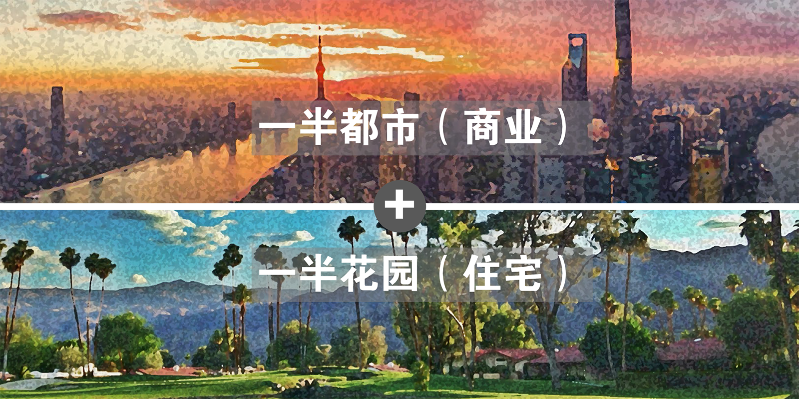 設計理念:依據(jù)建筑風格與布局,設計提出一半都市、一半花園的設計理念。
