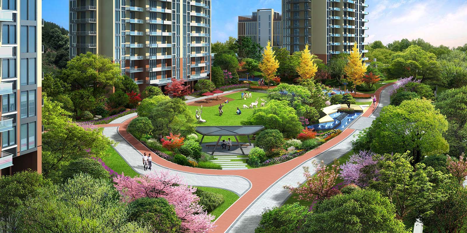 帶狀公園將住區與城市道路分離,動靜分離,提升小區的品質與生態環境,為居民提供一處住區外的休閑、活動場所,使區域更加親民、宜居,以此提升住區的附加值。